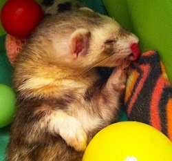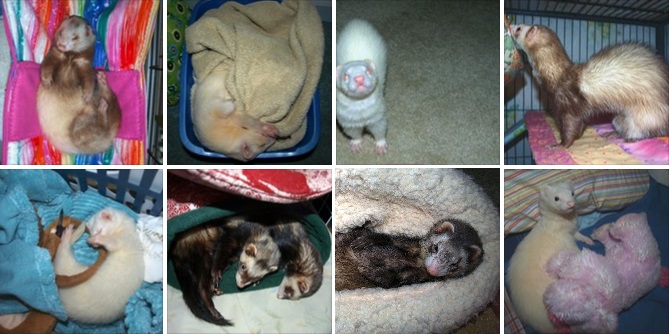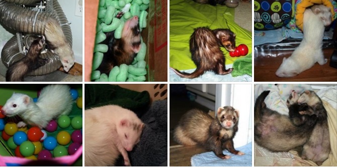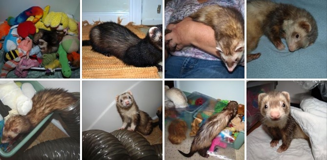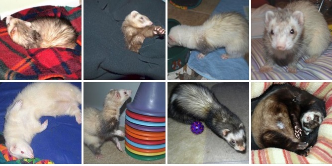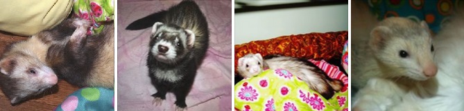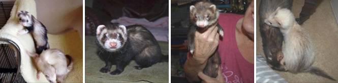 "Just wanted to give you a little update on Apollo and Ginger. My husband and I adopted them back in March and they're both doing so so well! I have been especially happy with how much improvement Apollo has shown. He is maintaining a healthy weight and his coat is getting progressively more healthy as well. Ginger continues to be just as lovey and cuddly as when we first brought her home They both love our first ferret Lucy, and she loves them right back. I was afraid that one of them would become a third wheel, but all three are just the best friends in the world. Thank you so much for taking care of Apollo and Ginger before we got to bring them home!" - Krista |