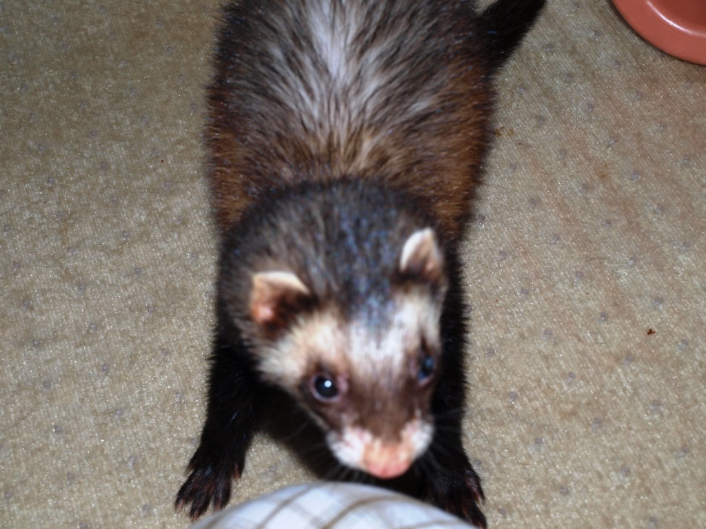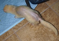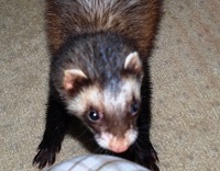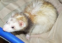 Scotty is 4 1/2 years old and looking for a foster or forever home. He is so playful and adorable. He doesn't play with other ferrets, so should go to a home by himself. He has adrenal disease and is getting melatonin implants every four months as treatment. He has inflammatory bowel disorder. Every so often he goes through a spell of a loose stool or diarrhea. He gets Prednisilone with his soup during those times, as well as Pectin to help form a stool.